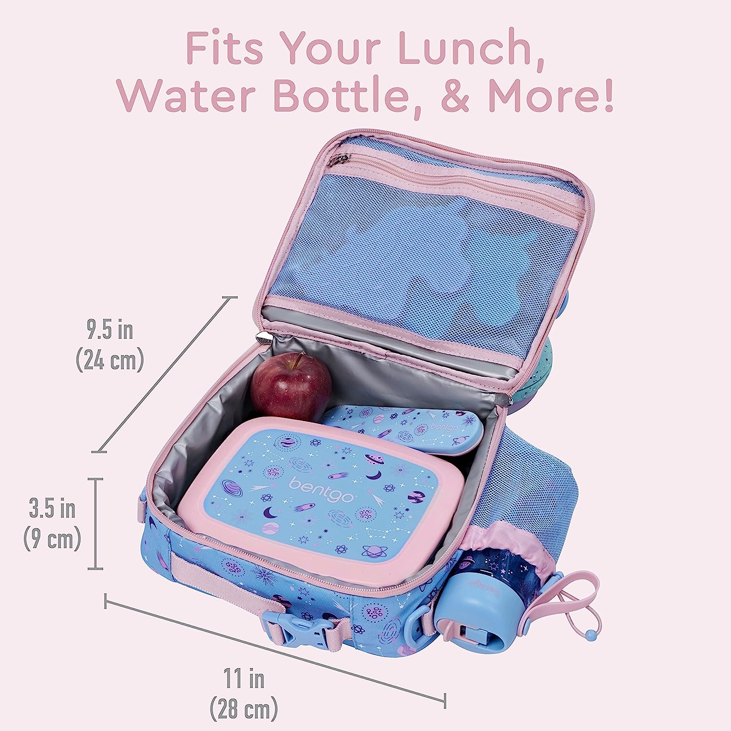 Bentgo Çocuk Öğle Yemeği Çantası, 3+ Yaş için okul ve etkinlikler arasında hareket halindeyken hem öğünleri hem de atıştırmalıkları taşımak için boyutlandırılmıştır.