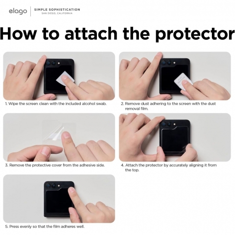 elago Galaxy Z Flip 5 Temperli Cam Ekran Koruyucu ürünü Galaxy Z Flip 5 ile tam uyumludur.