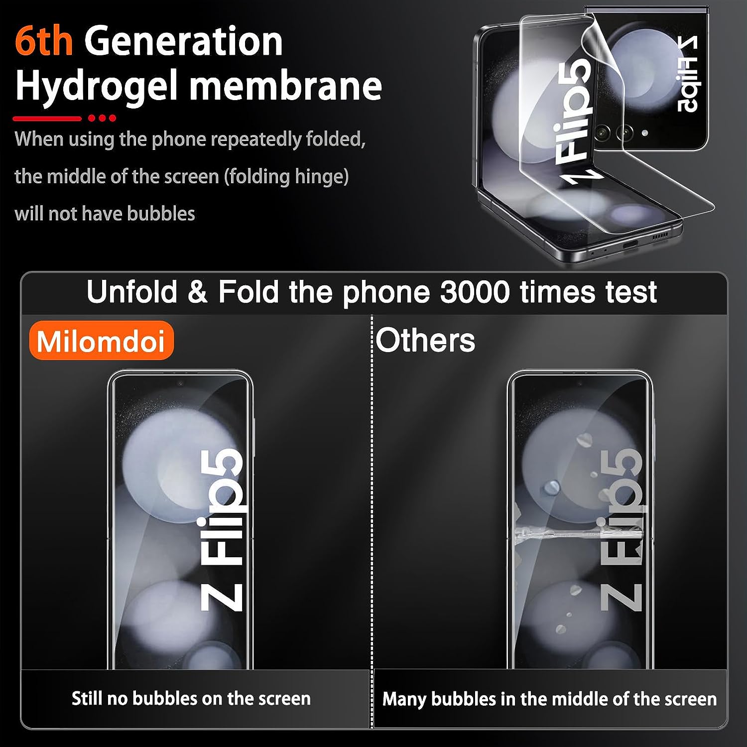 Ekran koruyucu temperli cam değildir, Z Flip 5'in tüm ekranını kaplayabilen ve çizilmelere karşı maksimum koruma sağlayan esnek bir malzeme olan birinci sınıf termoplastik poliüretandan (TPU) yapılmıştır.