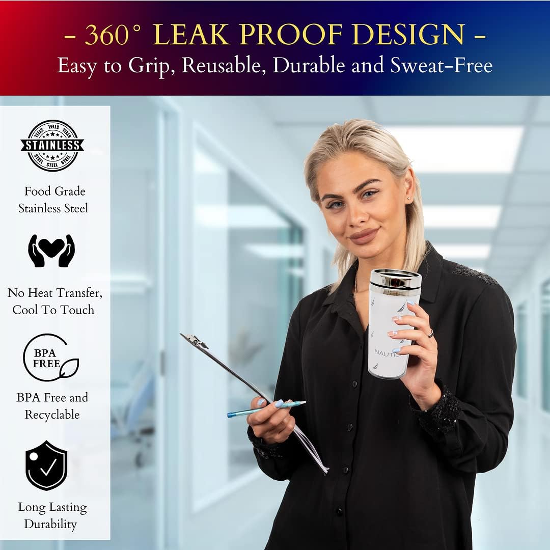 Bu Yalıtımlı 15 Oz Bardak, Dayanıklı Plastik Dış ve Birinci Sınıf Paslanmaz Çelikten Yapılmıştır ve BPA İçermez ve Çevre Dostudur - İçeceğinizi 8 Saat Sıcak ve 24 Saat Soğuk Tutar - Bu Ter İçermeyen Tasarım ve Sızıntı Önleyici Üst Ellerinizin Kaldığından Emin Olun Kuru - Yeniden Kullanılabilir Kahve Kupa, Gıda Sınıfı Paslanmaz Çelik ve Plastik Sip Kapağından Yapılmıştır - Bu İnce Kahve Kupa Bardak Tutucuya Sığdırmayı Kolaylaştırır Ve Slayt Üstü İçeceğinizi Sıcak Tutar