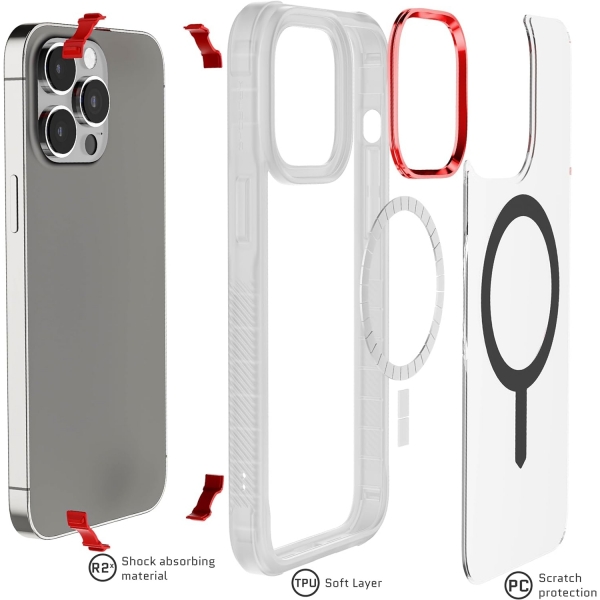 Sararma önleyici kaplamalı premium silikon MagSafe aksesuarlarını destekler.