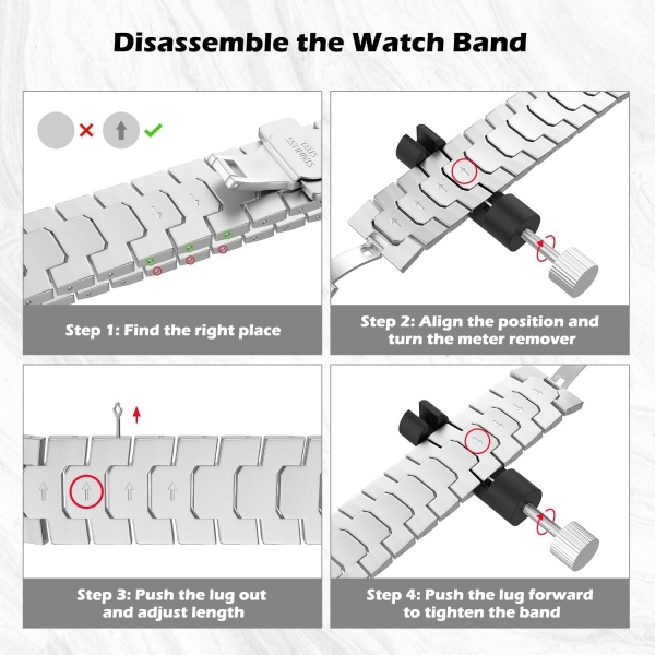 Ekteki sökme aletiyle baklaları ekleyip çıkararak uzunluğu bileğinize uyacak şekilde kolayca ayarlayabilirsiniz.