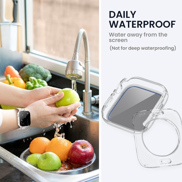 Saatinizin önünü ve arkasını tozdan, kirden, çiziklerden ve hasarlardan koruyabilen bu uyumlu iWatch 45mm yüz kapağı bulunur.
