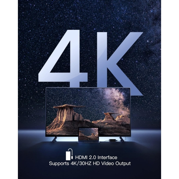 HDMI bağlantı noktası 4K/30Hz video aktarımını destekleyerek size yüksek çözünürlüklü bir görsel şölen sunar.