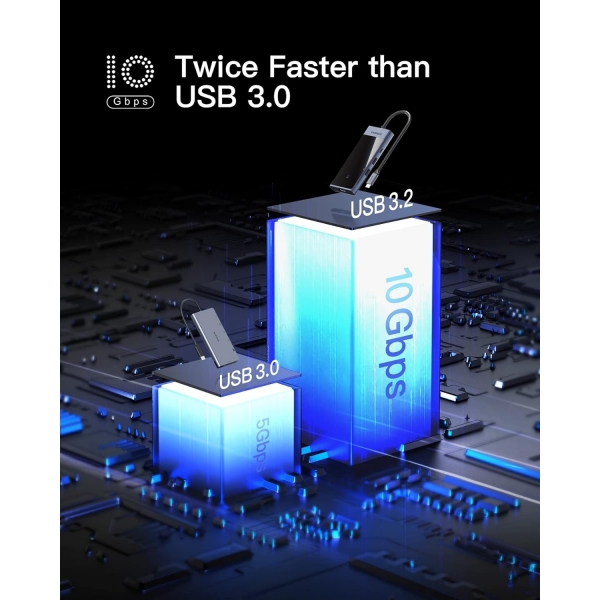 2 adet USB 3.2 Gen 2 Type A veri bağlantı noktası ve 1 adet USB 3.2 Gen 2 Type C veri bağlantı noktasıyla donatılmış bu hub, 10 Gbps'ye kadar veri aktarabilir.