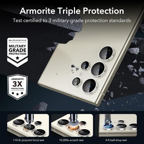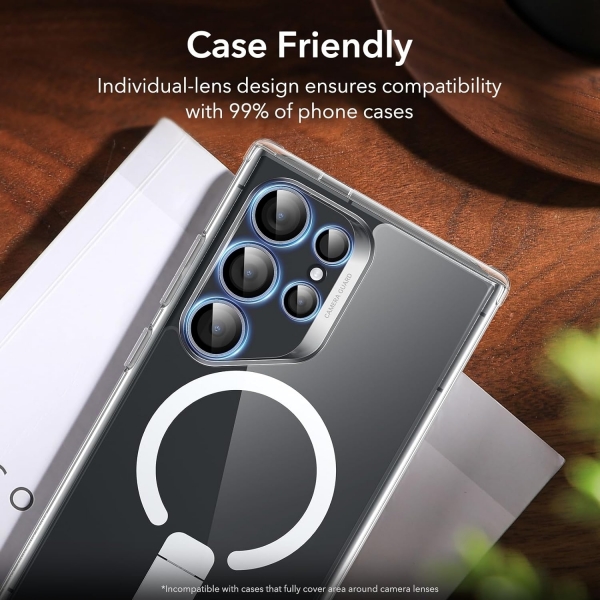 ESR Galaxy S24 Ultra Cam Kamera Lens Koruyucu ürünü Galaxy S24 Ultra ile tam uyumludur.