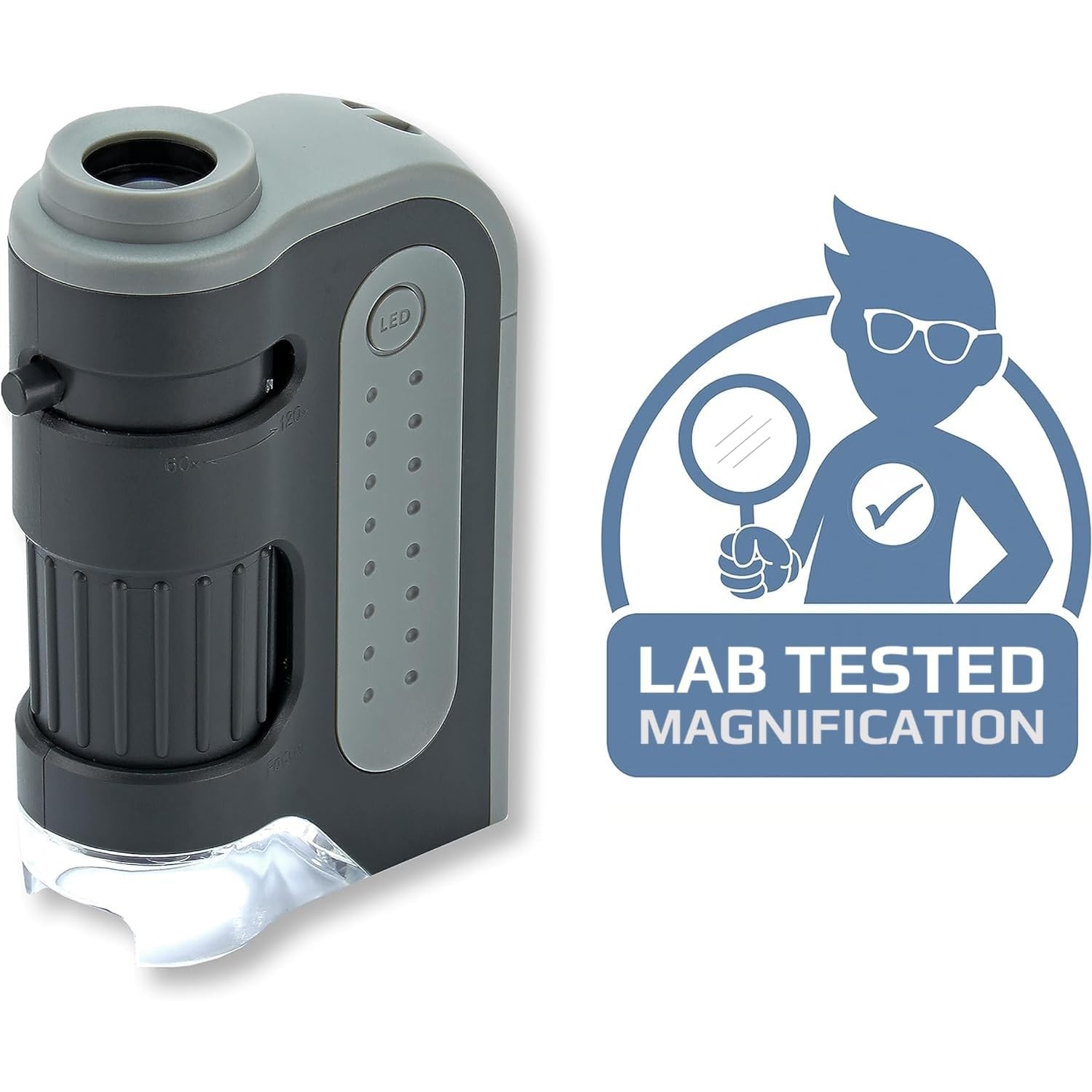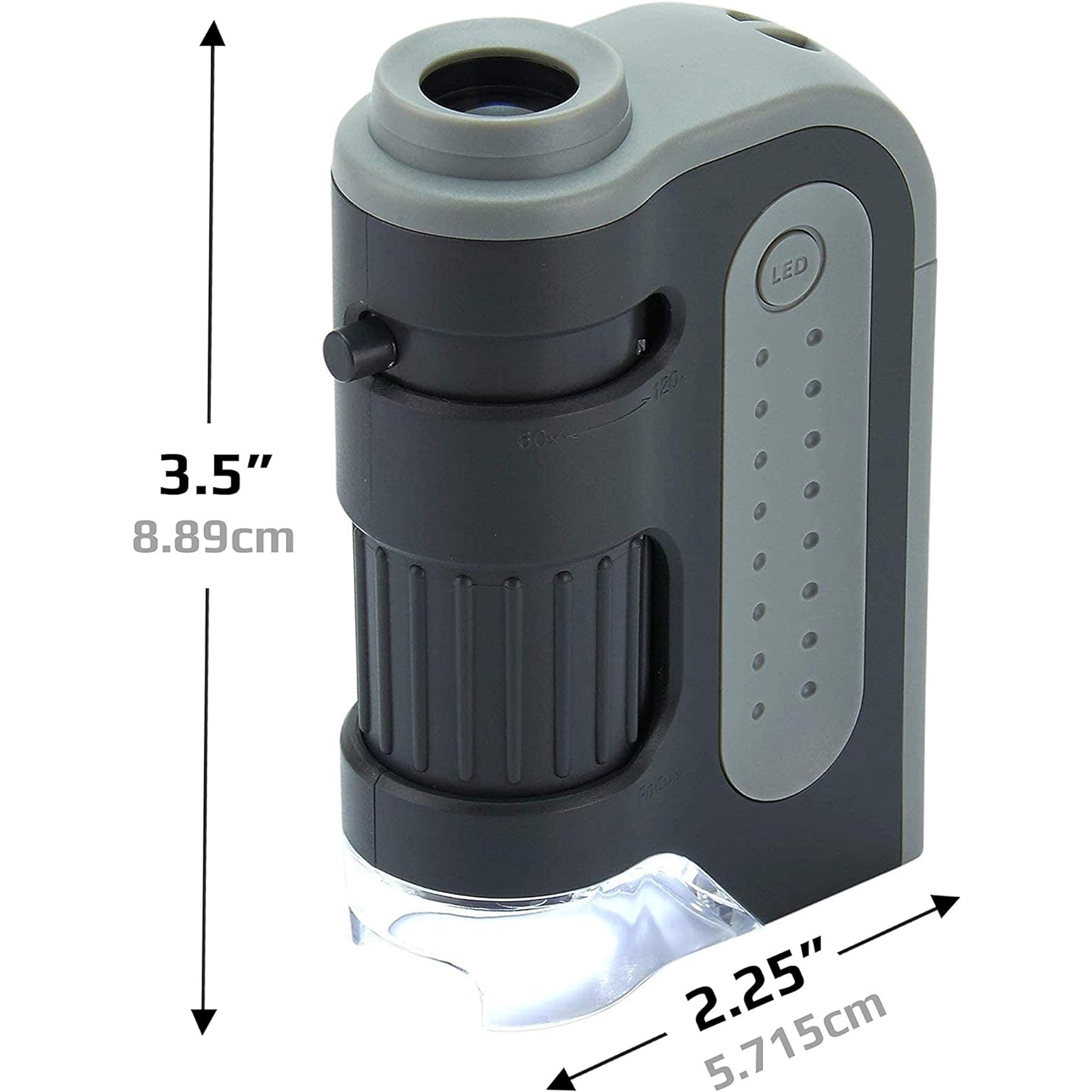 Güçlü 60x-120x büyütme aralığına sahip cep mikroskobu.