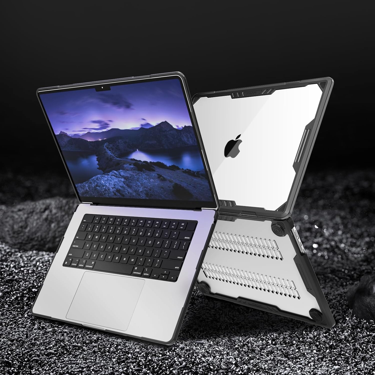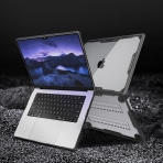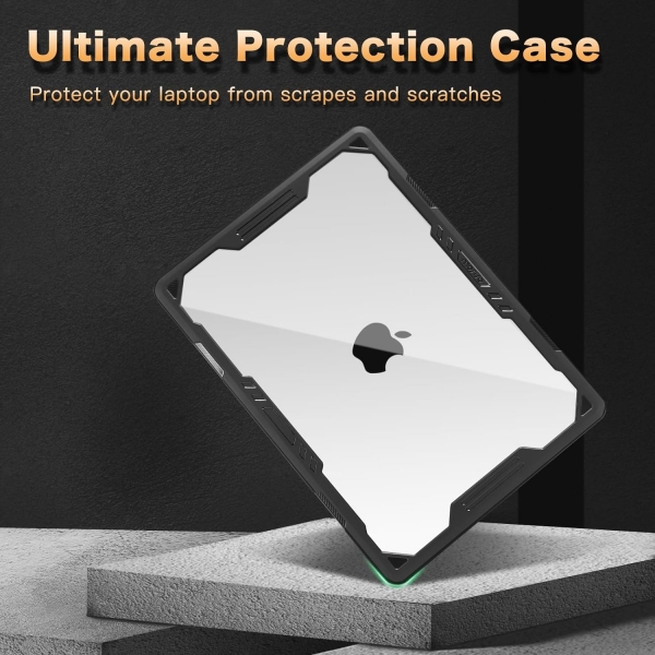Simetrik geometrik tasarımlı, şok emici eğimli çıkıntılar tasarımlı, TPU tamponlu sert kasa, dizüstü bilgisayarınız için en üst düzeyde koruma sağlar.