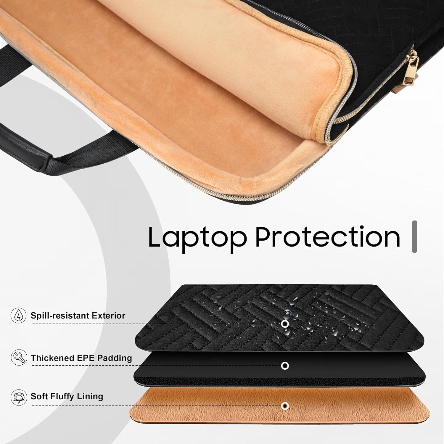 1 ana cep ve 1 ön cep ile birlikte gelir, bu 15,6 inç dizüstü bilgisayar kılıfı yalnızca değerli dizüstü bilgisayarınızı korumakla kalmaz, aynı zamanda tabletler, telefonlar, kablolar, fare, kulaklık, notlar, cüzdan gibi diğer aksesuarlar için de yeterli alan sağlar.