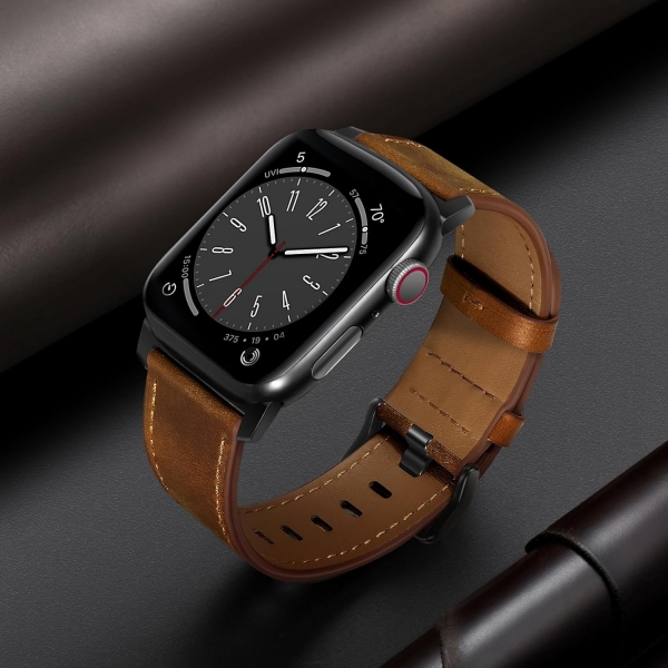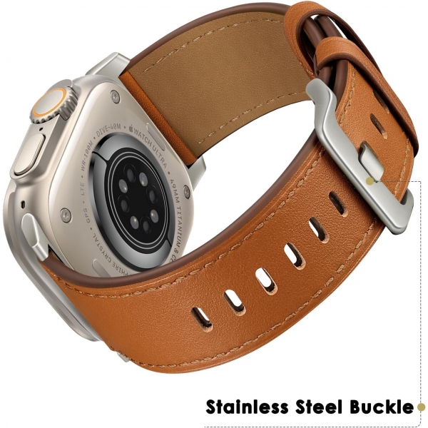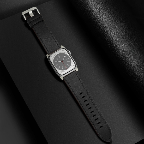 Deri bant, her iki ucunda da yükseltilmiş geniş paslanmaz çelik konektörlerle birlikte gelir, saat arayüzüne hassas ve güvenli bir şekilde kilitlenmesini ve asla düşmemesini sağlar.