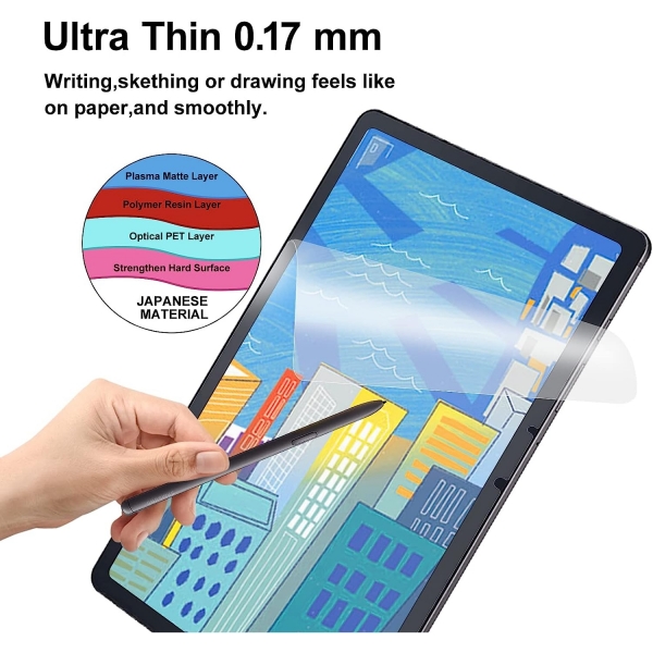 Kağıt yüzeyi çizim ve yazma için kağıda benzer bir his sağlar, kalem uçlarını yıpratmaz.