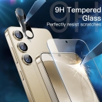 Hem ekran koruyucusu hem de kamera lensi koruyucusu, 9H sertlikte çizilmeye karşı dayanıklı malzemeyle üretilmiştir.