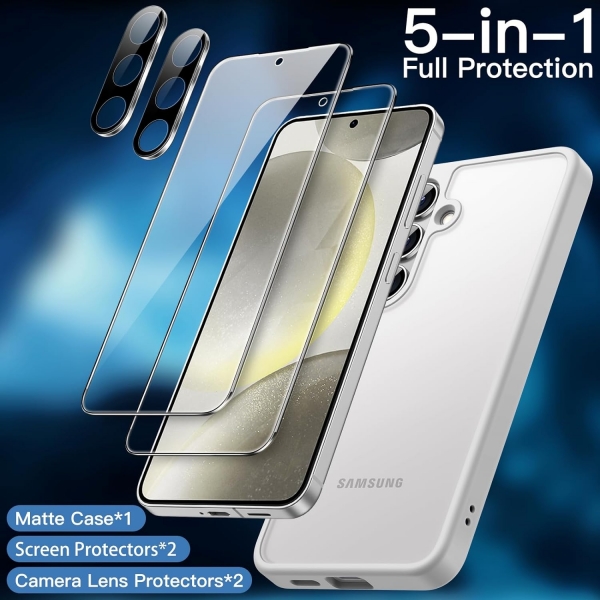 Bu koruyucu mat kılıf, 2'li paket ekran koruyucuları ve 2'li paket kamera lens koruyucularıyla birlikte telefonunuz için 360 derecelik çok yönlü koruma sağlar.