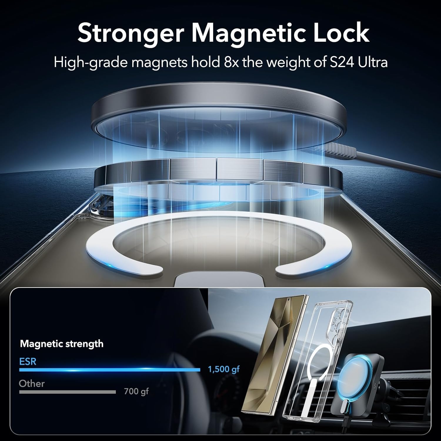 ESR Galaxy S24 Ultra Manyetik Standlı Kılıf ürünü Galaxy S24 Ultra ile tam uyumludur.