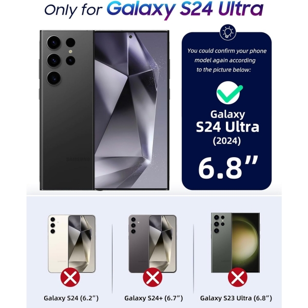 Samsung Galaxy S24 Ultra 5G (6,8 inç) cep telefonları ile uyumludur. Lütfen bu kılıfı satın almadan önce telefonunuzu telefon kutusundan veya telefondan kontrol edin.
