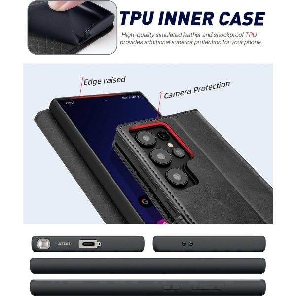 Bu OCASE S24 Ultra cüzdan kılıfı, özel TPU iç kılıfıyla birinci sınıf PU yumuşak deriden yapılmıştır.