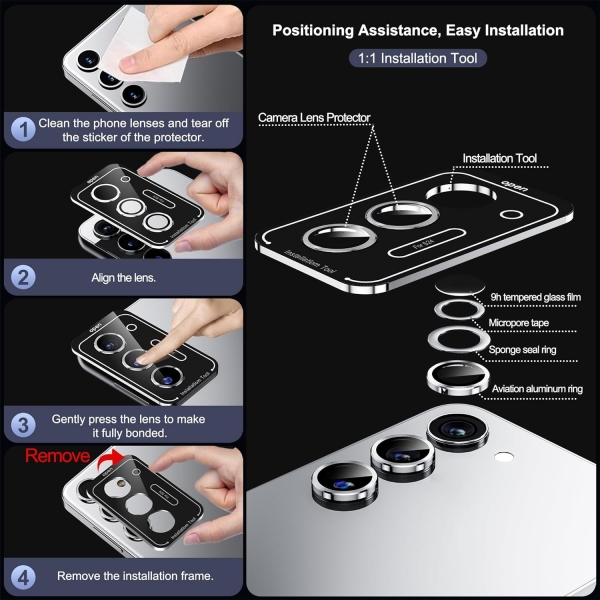 Alüminyum alaşımlı metal 9H temperli cam ile %99,99 optik dereceli ışık geçirgenliği, orijinal kamera gibi net fotoğraflar sağlarken yeterince koruyucudur.