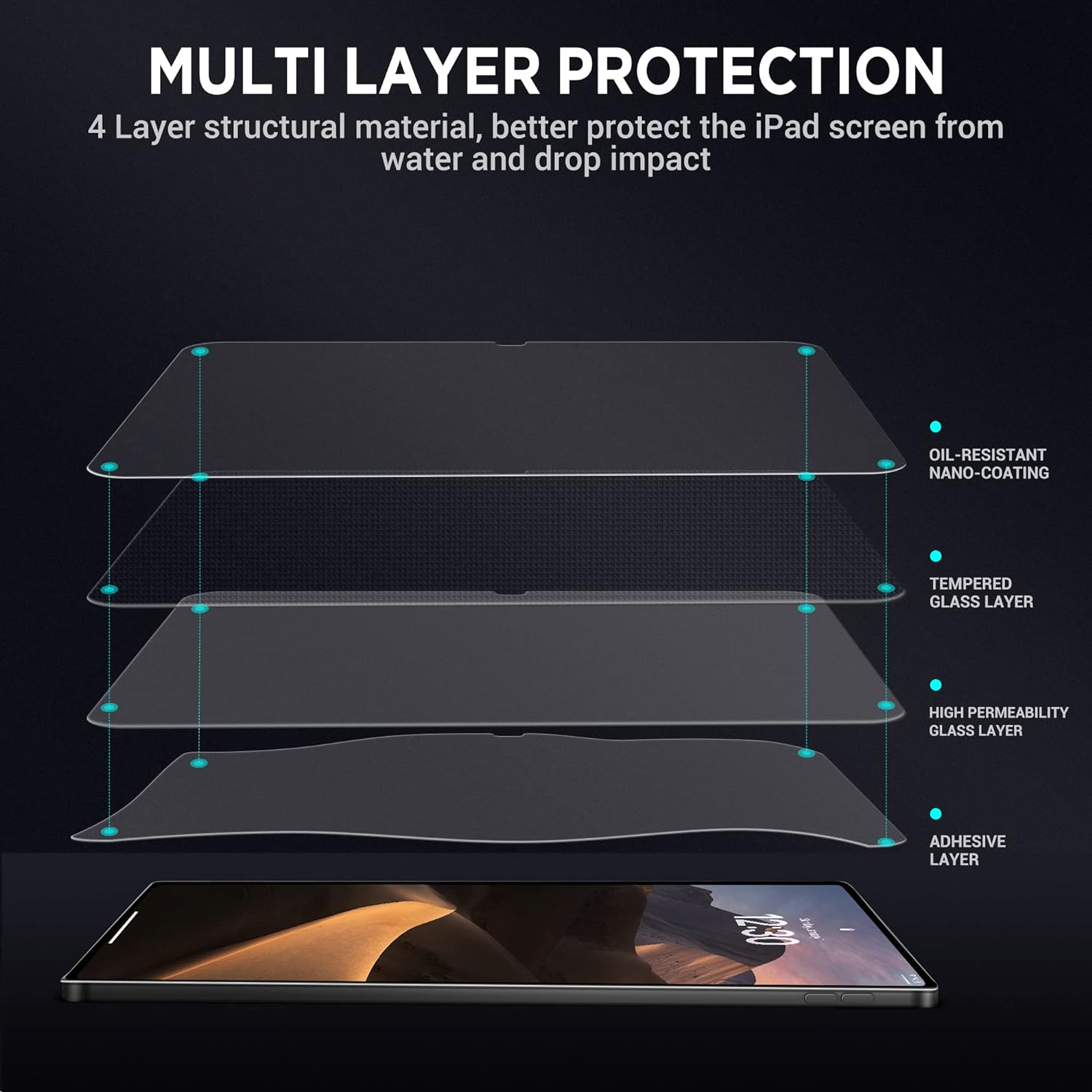 9H sertlikteki temperli cam, iPad ekranının keskin nesneler tarafından çizilmesini önler.