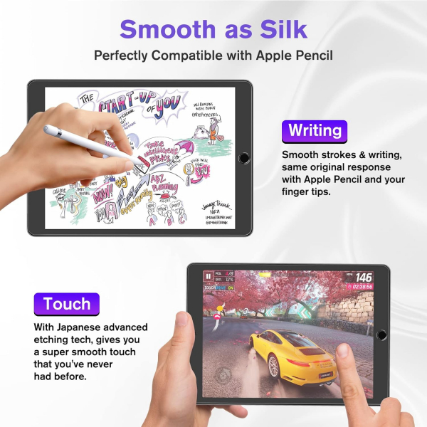 Apple Pencil ile mükemmel uyumlu olan film yüzeyinin hassas ipeksi hissi, kalem ucunun aşınmasını azaltırken yaratıcılığınızı ortaya çıkararak pürüzsüz kalem çizgileri sağlar.
