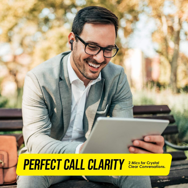 Çift Mikrofon / TWS Exec çift mikrofonlarla kristal netliğinde aramalar yapıp alabilmeniz için arka plan gürültüsünü en aza indirin.