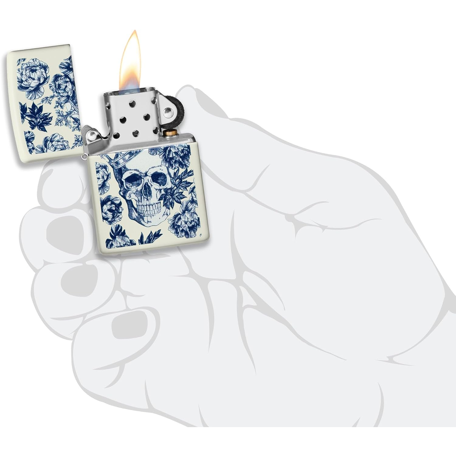 Zippo Karanlıkta Parlayan Çiçekli Kral Kafatası Çakmak