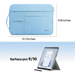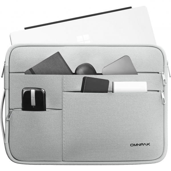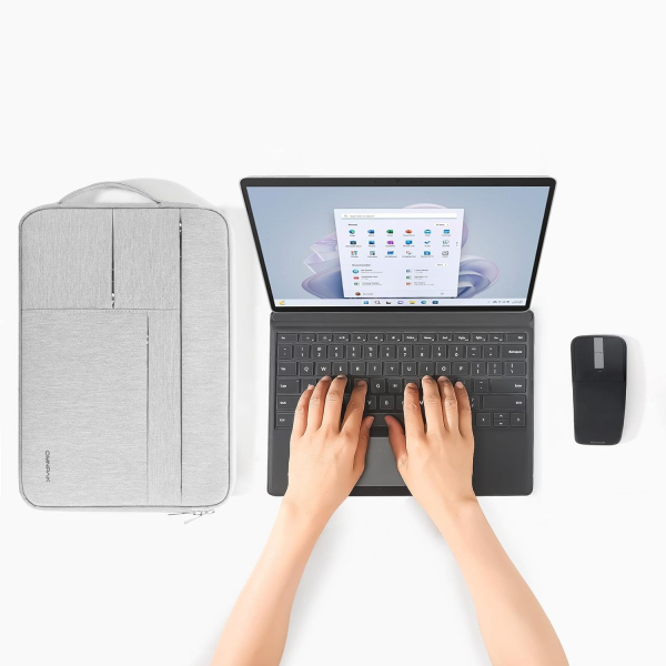Microsoft Surface Pro için ince ve hafif dizüstü bilgisayar kılıfında, güç adaptörünü, fareyi veya diğer temel eşyaları depolamak için 3 ön cep ve 1 büyük arka cep bulunur.
