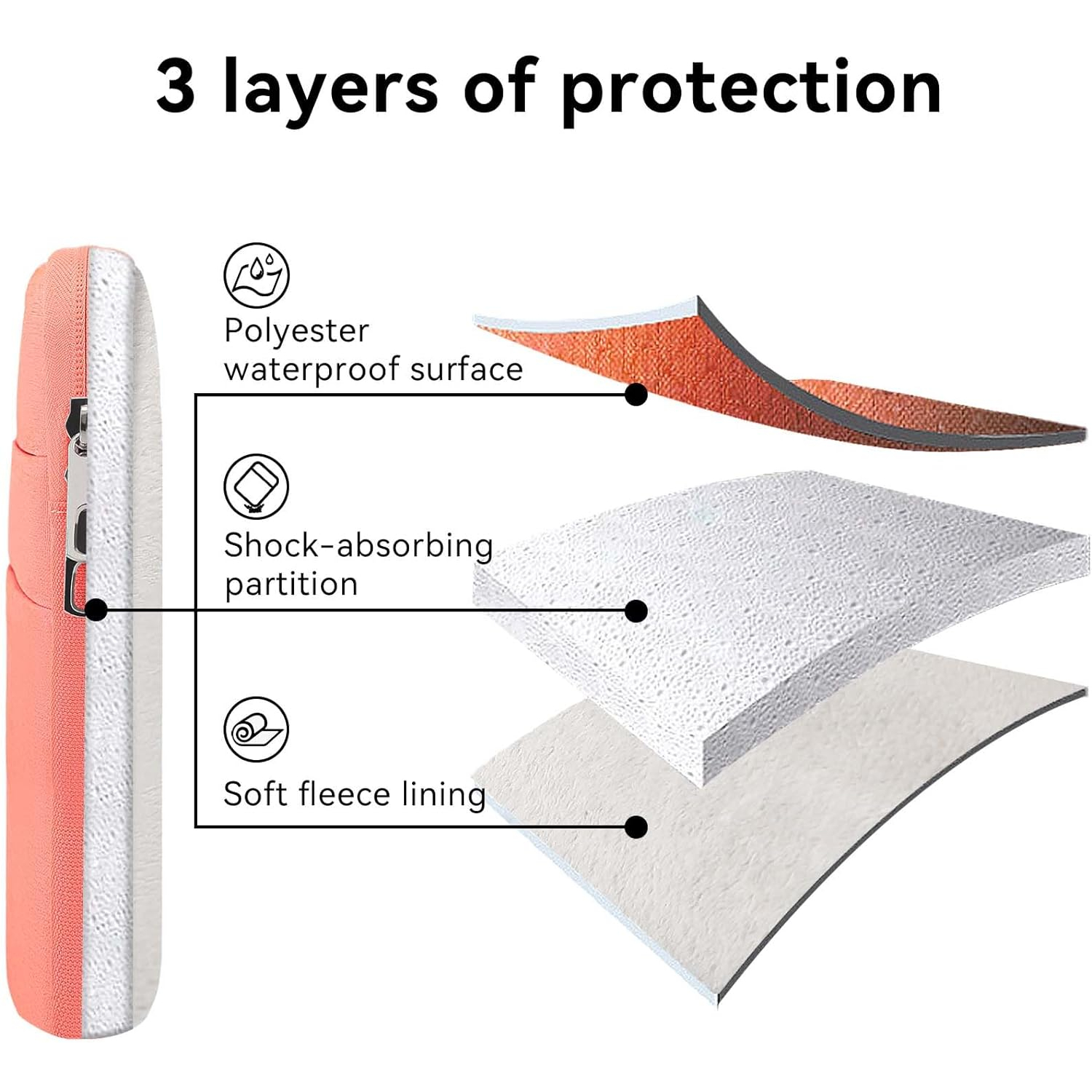 Omnpak dizüstü bilgisayar kılıfı kılıfı 3 katmanlı malzeme yapısından, ilk katman su geçirmez malzemeden, ikinci katman mükemmel şok direncine sahip kalınlaştırılmış süngerden, üçüncü katman yumuşak peluş astardan, dizüstü bilgisayarın çok yönlü korumasından yapılmıştır.