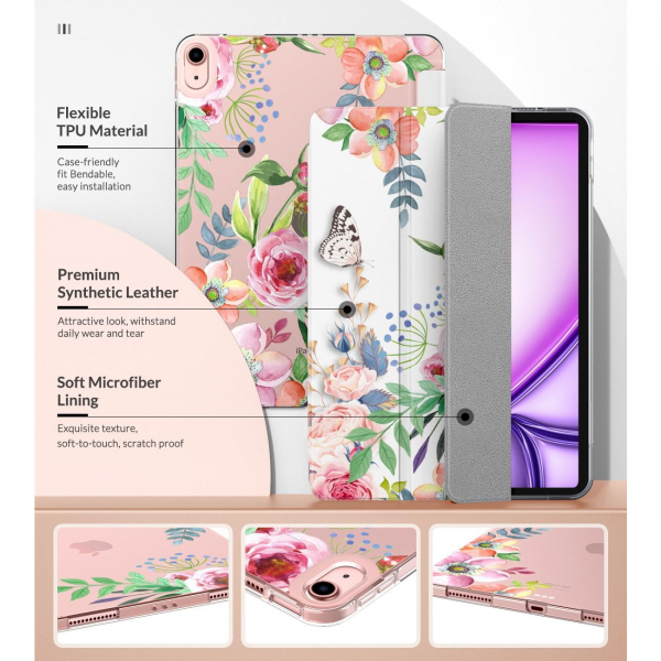 iPad Air kılıfı Dahili manyetik şerit, kapak açılıp kapatıldığında iPad'inizi otomatik olarak uyandırır veya uyku moduna geçirir, pil ömrünü korur ve uzatır.
