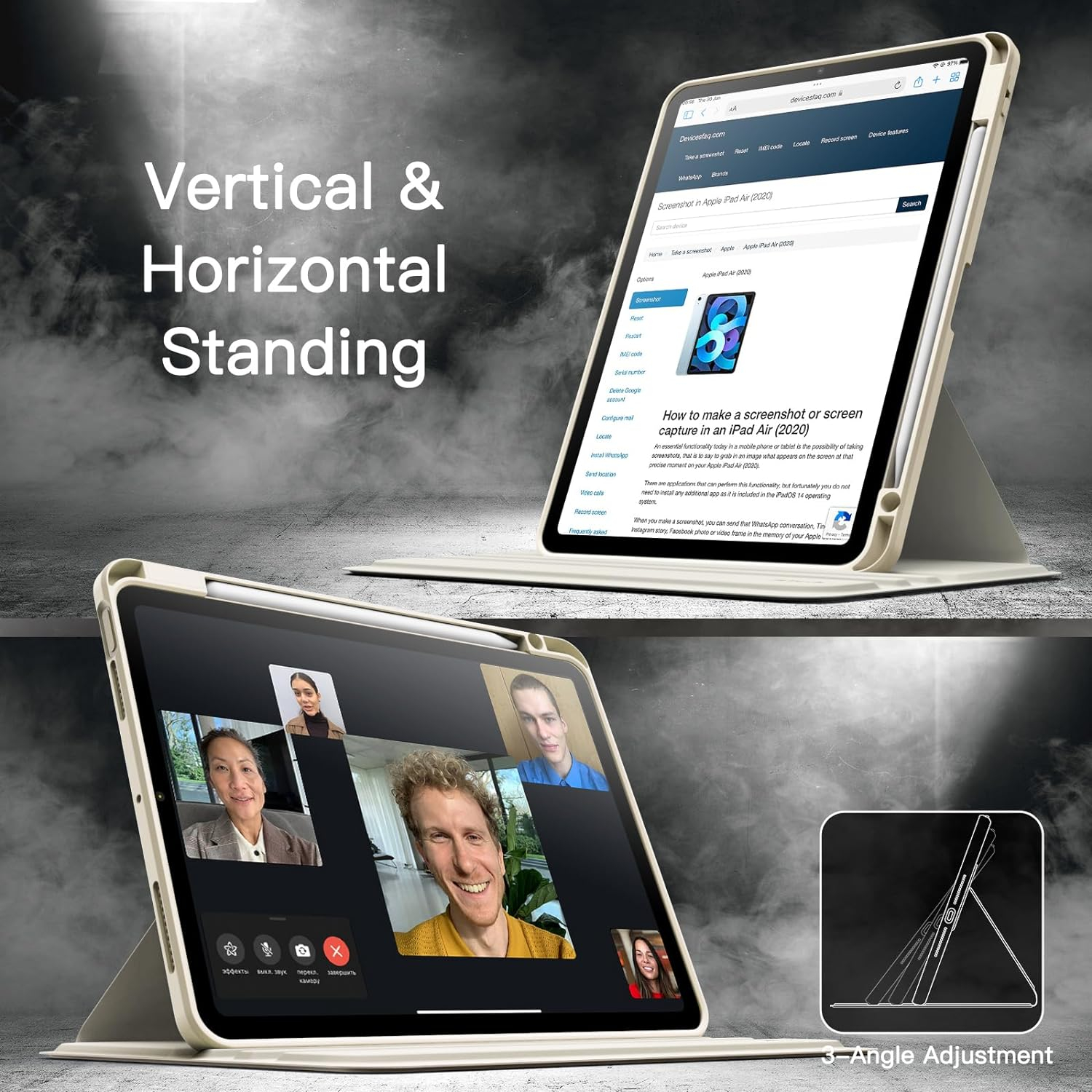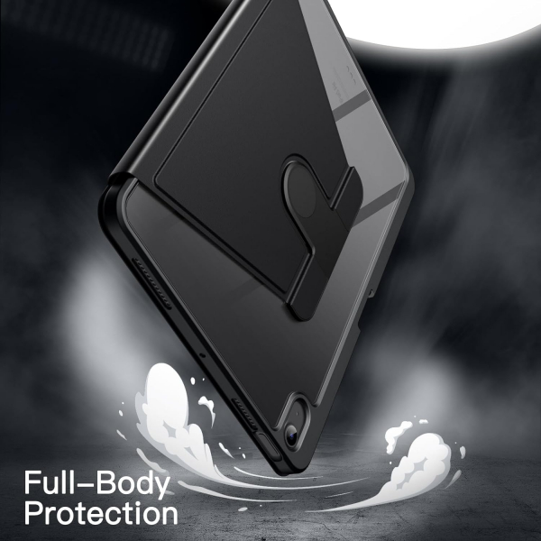 Şeffaf PC arkası, darbeye dayanıklı TPU çerçeve ve PU deri ön kapakla üretilen bu kılıf, iPad'inizi düşmelere ve darbelere karşı iyi korur.