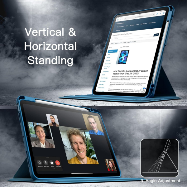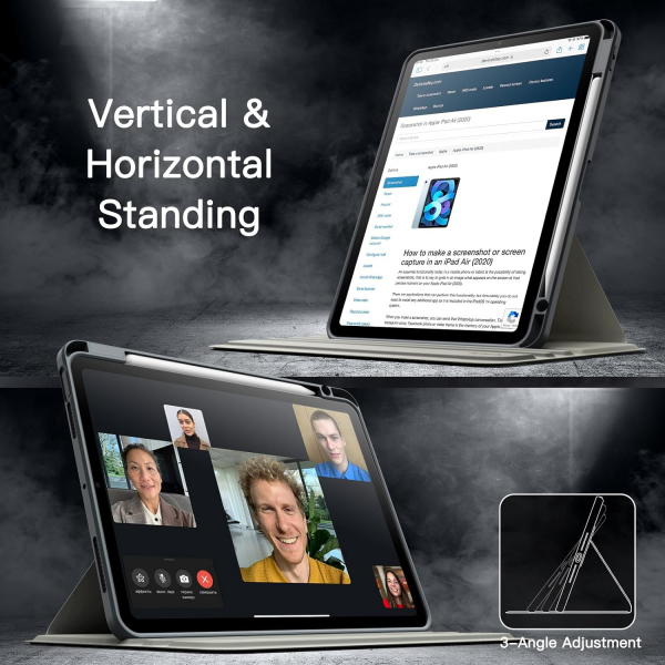 360 derece dönebilen bir tasarıma sahip olan kasa, üç kaymaz derin oluk ile iPad'inizi ister dikey ister yatay stand modunda çeşitli açılarda sabit bir şekilde destekler.