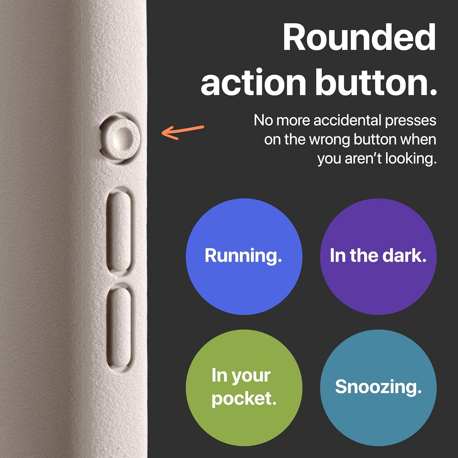 Cebinizde, karanlıkta veya koşarken eylem düğmesini kolayca bulun.
