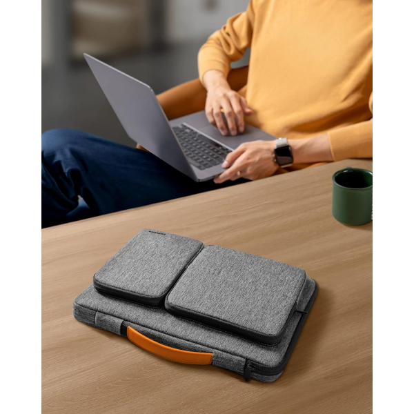 Tomtoc Dizüstü bilgisayar çantası, cihazınızı kaçınılmaz darbelere, darbelere, çizilmelere ve suya karşı korumak için 4 köşe koruyucusu, yüksek esnek kenarlar, yüksek yoğunluklu dolgu ve suya dayanıklı kumaştan oluşan CornerArmor teknolojisine sahiptir.