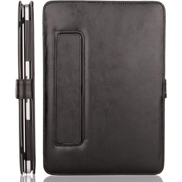 Üst köşelerinde şeffaf şeritler bulunan basit tarzdaki portfolyo standı kılıfı.