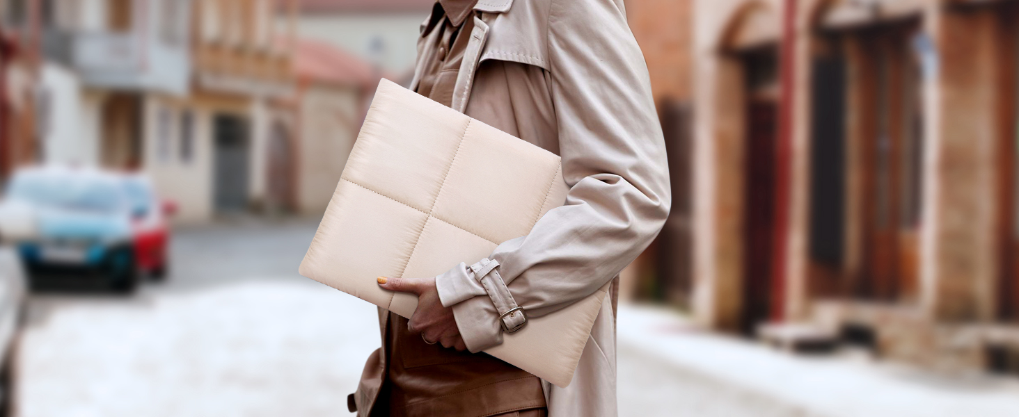 Geleneksel dizüstü bilgisayar çantası veya evrak çantasından farklı olan şık ve stil sahibi kabarık dizüstü bilgisayar kılıfı, organizasyonu modayla birleştiren yeni bir taşıma tarzı sunar.