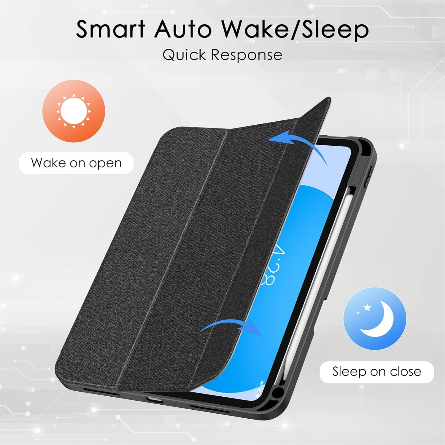 Yerleşik mıknatıslarla, kapak açılıp kapatıldığında cihazınızı otomatik olarak uyandırır veya uyku moduna geçirir.