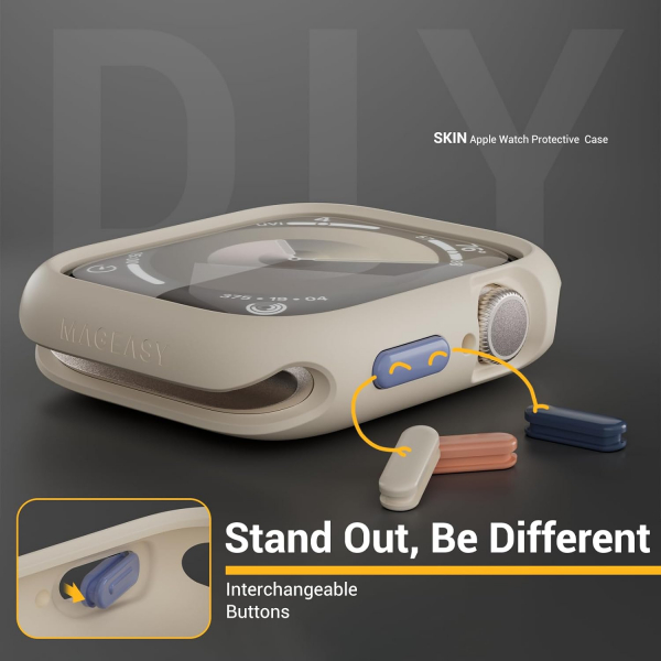 Çeşitli renklerdeki düğmeleri kolayca değiştirerek saatinizi ruh halinize ve tarzınıza uyacak şekilde kişiselleştirin.