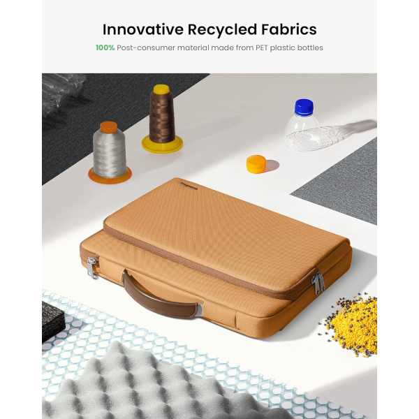 Suya dayanıklı geri dönüştürülmüş kumaşlar ve yumuşak yünlü, sofistike ara çizgili tasarımlı astar, dizüstü bilgisayar çantası kalitesiyle ilgili beklentilerinizi karşılar veya aşar.