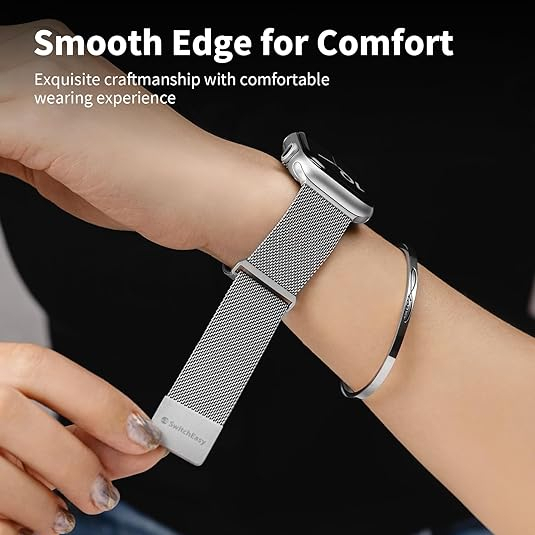 Piyasadaki diğer ucuz örgülü Apple saat bantlarının aksine, SwitchEasy Mesh serisi Apple watch manyetik bandı süper pürüzsüz kenarlara sahiptir, cildinizi veya giysilerinizi çizmez veya tahriş etmez.
