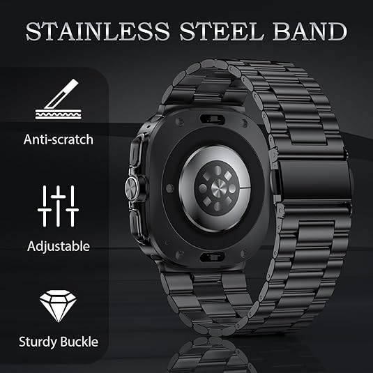 Samsung Watch Ultra 47mm kayış, mükemmel sertlik ve parlaklığa sahip, yüksek mukavemetli ve korozyona dayanıklı 316L paslanmaz çelikten yapılmıştır.