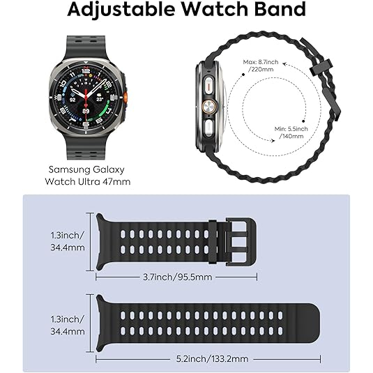 Galaxy Watch Ultra bandı ayarlanabilir ve 5,5-8,7 inç (140-220 mm) arasındaki bileklere uyar.