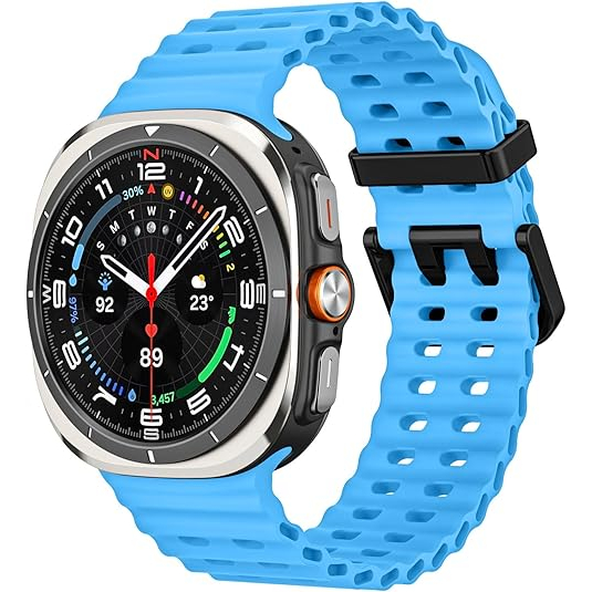 Yumuşak ve nefes alabilen silikon malzemeden üretilen Galaxy Watch Ultra 47 mm bant, cilt dostudur, su geçirmez, hafiftir ve temizlemesi kolaydır, cilt tahrişine neden olmadan güvenli bir kullanım deneyimi sağlar.