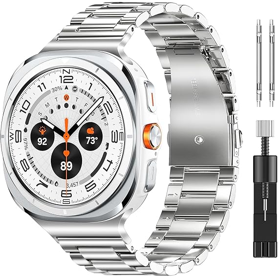 Samsung Galaxy Watch Ultra 47mm için uygun olan bu paslanmaz çelik bilezik, spor, kısa geziler, günlük veya iş olsun, her durum için güzel ve şık bir görünüm sunar.
