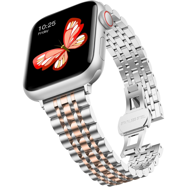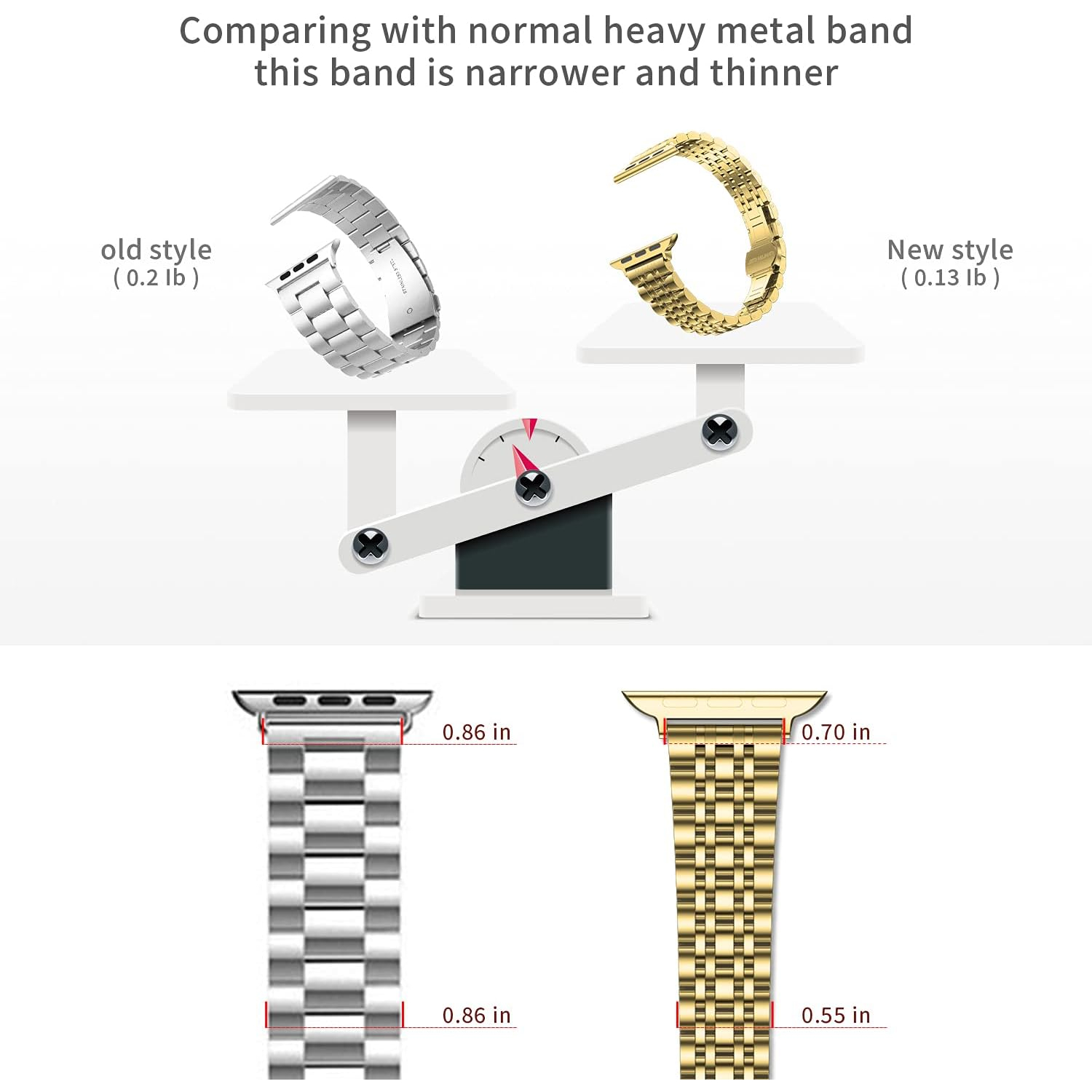 Yüksek kaliteli paslanmaz çelikten üretilen bu ince iwatch kayışı 7 boncuk tasarımıyla esnektir ve size rahat bir kullanım sağlar.