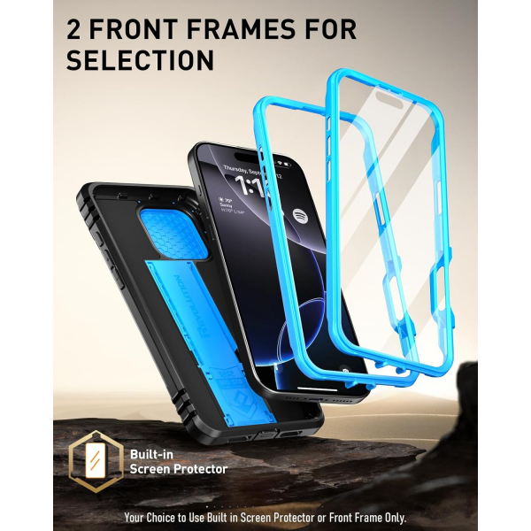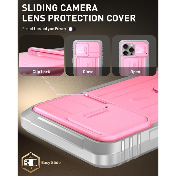 Dahili ekran koruyucusu, bağlantı kapakları, sağlam polikarbonat kasa ve darbe emici TPU, 360 derece koruma sunar.