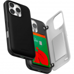 Kart saklama kısmı eğri tasarlanmıştır, böylece 2 kartı alttan üste daha kolay saklayabilirsiniz.