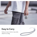 Örgülü kablo bileğinizin etrafına sarılabilir veya kulaklıklarınızı yanınıza almanın daha rahat ve güvenli bir yolu için çantanıza veya kemer tokanıza kolayca takılabilir.