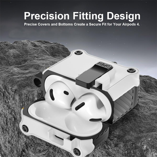 Darbeye dayanıklı kılıf, askeri sınıf dayanıklı TPU malzemeden ve güvenli kilit tasarımından yapılmıştır, bu da airpods 4 kılıfınızı düşmelerden, çizilmelerden ve darbelerden korur ve üst kapağın düşmesini önler.
