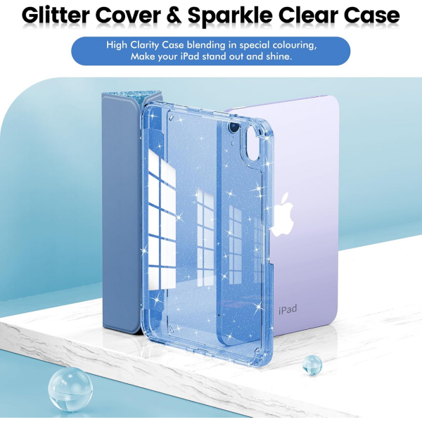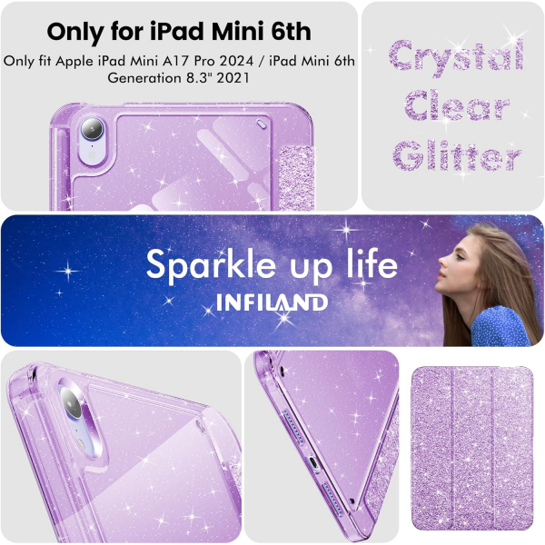 Parıltılı parlak deri kılıf ve parlak kristal berraklığında parlak arka kılıfın birleşimi olan bu Apple iPad mini 6. Nesil Kılıf 8.3 inç, özellikle moda kızlar, kadınlar veya sevimli çocuklar için iPad'inizin güzelliğini vurgulamaya odaklanıyor.