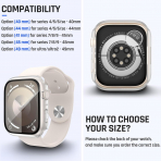Bu Apple Watch kılıfı, birinci sınıf mat PC malzemesini 9H temperli cam ekran koruyucusu ve sert arka tampon çerçevesiyle birleştirerek çizilmelere, çatlaklara ve darbelere karşı 360 derece koruma sağlar.
