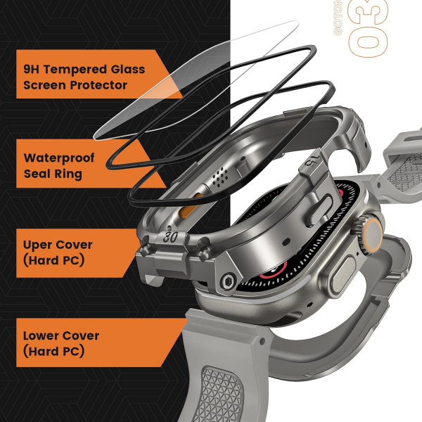 [3'ü 1 arada] Apple Watch 49 mm için ekran koruyucu kılıflı Goton bant; Apple Watch Ultra 2/3, Ultra ile uyumludur.